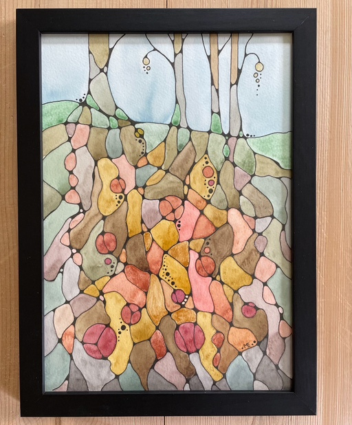 Akvarell och tusch, A4. Svart träram (kan stå)