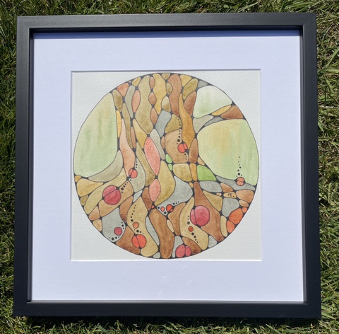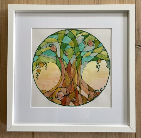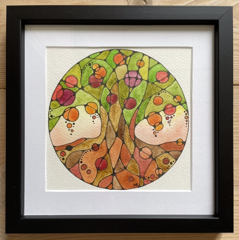 Akvarell och tusch, 14 cm (22 cm med svart träram som kan stå).